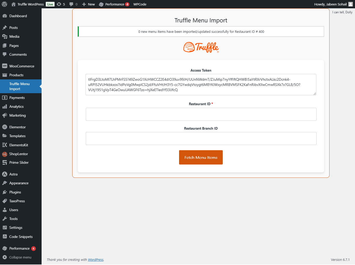 Truffle POS Menu Sync & WooCommerce Checkout Customization